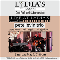 Saturday 7:00 pm to 10:00 pm | Pete Levin Trio, Pete Levin - keys, Mike Jackson - guitar, Jeff Siegel - drums Jazz | Lydia's Cafe & Bar 7 Old US Highway 209 Stone Ridge, NY See Map |