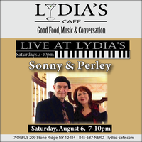 Saturday 7:00 pm to 10:00 pm | Sonny & Perley, Perley Rousseau - Vocals, Sonny Daye - keyboard, Lew Scott - bass Jazz, Latin | Lydia's Cafe & Bar 7 Old US Highway 209 Stone Ridge, NY See Map |