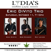 Saturday 7:00 pm to 10:00 pm | Eric DiVito Trio, Eric DiVito - guitar, Bob Gingery - bass, Ray Levier - drums Jazz | Lydia's Cafe & Bar 7 Old US Highway 209 Stone Ridge, NY See Map |