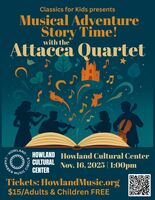 Sunday 1:00 pm to 2:00 pm | A "Classics for Kids" Concert - Musical Adventure Story Time with The Attacca String Quartet Children's, Classical/Opera | Howland Cultural Center 477 Main Street Beacon, NY See Map |