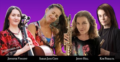 The Jazzwomen Quartet play in Ridgewood, NJ for their 3rd appearance in a month-long "Jazz at the Library" tour of free concerts celebrating Women's History Month and generously funded by our public libraries. Featuring saxophonist Lois Hicks-Wozniak, pianist Bev Poyerd, bassist Jennifer Vincent and drummer Kim Peralta.Jazzwomen Website | ||