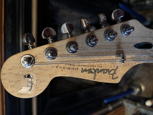 Custom Fender StratocasterAn authentic Franken-strat. Mighty Might reverse headstock maple neck, Wilkinson tremolo bridge, Tone Rider Surfari pickups, upgraded electronics. Don't let the name fool you, these pickups rock, they sound very similar to many vintage pickups I've heard.