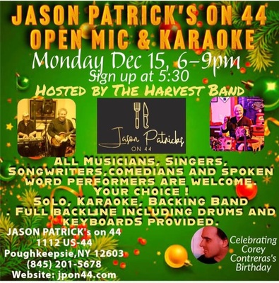 Open Mic and Karaoke .Hosted by The Harvest Band Full Back line available